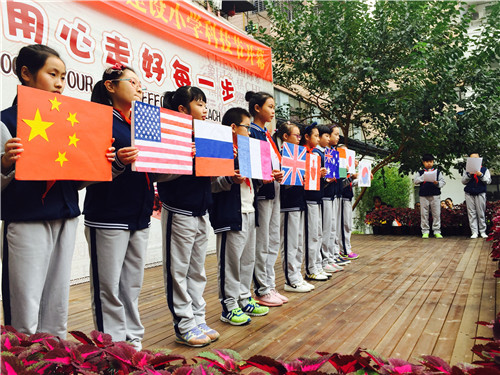 2016年10月24日,是联合国七十一岁的生日。晨间,在温州市建设小学小高桥校区的操场上,五(10)中队的队员们融美术、体艺、阅读等学科给建设小学师生展示了以“中国心 国际眼”喜迎联合国生日为主题的特色晨会。