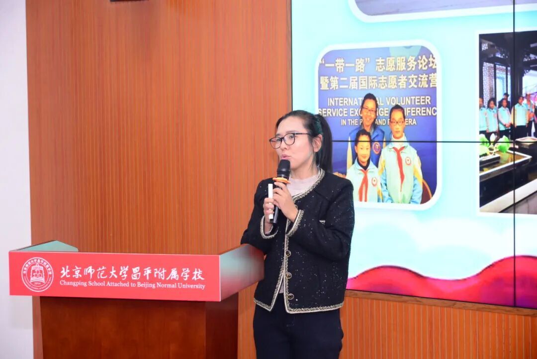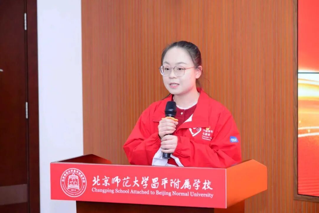 北京师范大学昌平附属学校大队辅导员董京俊汇报了学校少先队志愿服务两年以来的探索与实践,和在志愿服务实践中的创新模式,从体系构建、搭建平台、主体唤醒、机制保障四个层面逐步探索将少先队志愿服务与学校育人目标、落实立德树人根本任务、为党育人的主责主业有机结合,连接“小岗位”与“大情怀”。