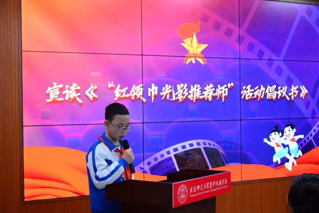 为落实全国少工委、国家电影局关于开展“红领巾的光影记忆”观影活动的通知精神,交流研讨会后,北京师范大学昌平附属学校少工委委员、六(7)中队邵悦轩宣读了由本校和北京市大兴区魏善庄第二中心小学、昆明市五华区新闻路小学、克州阿图什市哈拉峻乡谢依特小学四所学校共同发起的“红领巾光影推荐师”活动倡议书,打破校际壁垒,引导少先队员从“观影者”转变为“参与者”与“传播者”,在协同实践中深化爱国情感,提升社会责任,探索了少先队志愿服务活动项目化、联动化的新路径。