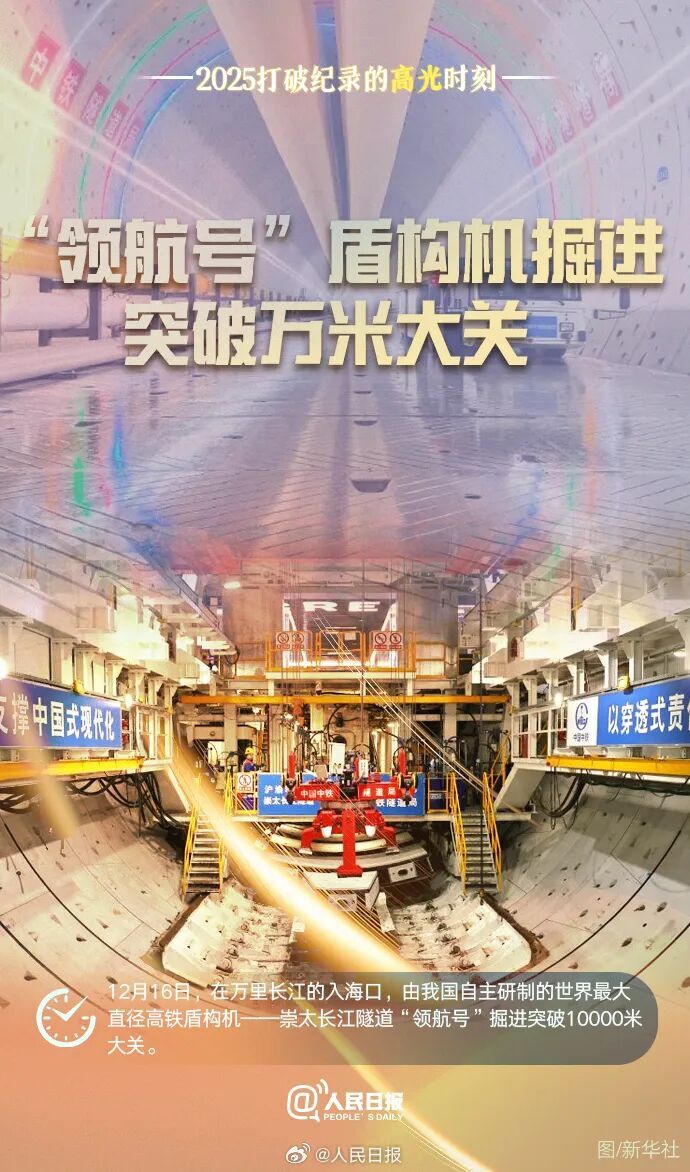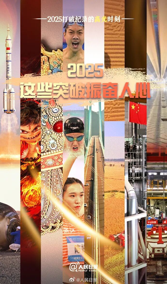 贵州花江峡谷大桥刷新世界纪录、“领航号”盾构机掘进突破万米大关、中国影史动画电影票房创纪录、张展硕于子迪等体育小将全运会屡破纪录……2025这些突破振奋人心,骄傲回顾!