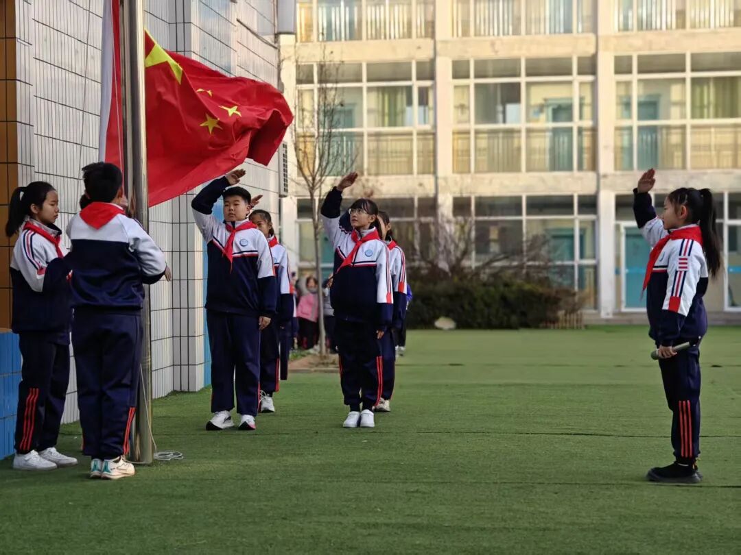 全体少先队员身着整齐校服,佩戴鲜艳红领巾,齐聚操场参加主题升旗仪式。师生面向国旗肃立,高唱国歌,目光坚定而崇敬。仪式上,五(7)中队作了题为《铭记历史,吾辈当自强》的国旗下演讲,从“南京大屠杀死难者国家公祭日”的历史背景出发,讲述南京大屠杀中同胞的苦难遭遇,呼吁全体队员牢记苦难历史、勇担时代使命。