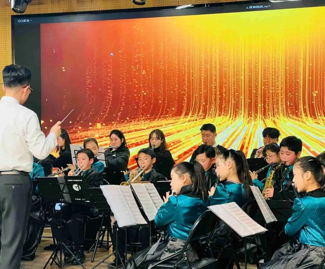 队员们在课后服务中深耕艺术领域,从初学时的生疏到登台时的自信,从零散音符到和谐交响,日复一日的坚持让热爱凝结成动听乐章。舞台上,队员们身着礼服,指尖灵动飞舞:小提琴悠扬婉转,铜管乐雄浑激昂,打击乐铿锵有力。
