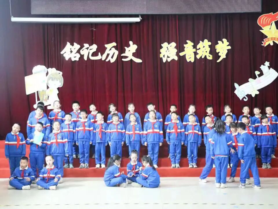 “站在新的起跑线,谱写中华伟大的诗篇。五十六民族汇成中国梦,每个梦想都在中华中华少年......”队员们齐声高唱,以真挚歌声抒发对时代的担当。活动主体部分为中队合唱展演,全校12个中队依次登场,紧扣主题,深情唱响《红旗飘飘》、《红星闪闪》、《卢沟谣》等经典红色歌曲。队员们用清澈而嘹亮的歌声,回望峥嵘岁月,传承红色基因。随后,《歌唱祖国》、《天耀中华》、《中华少年》等曲目铿锵上演,激昂的旋律唱出了新时代少先队员立志筑梦的豪情壮志。舞台上,一年级小朋友演绎的《祖国祖国我们爱你》充满童真,高年级队员带来的《如愿》真挚动人。