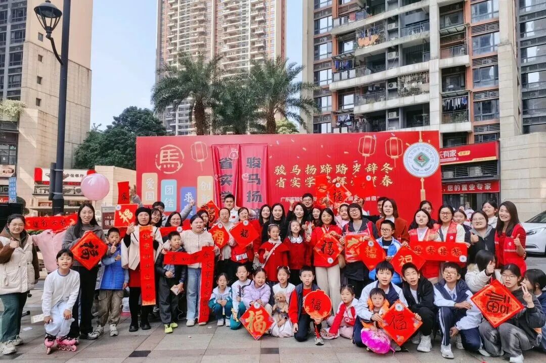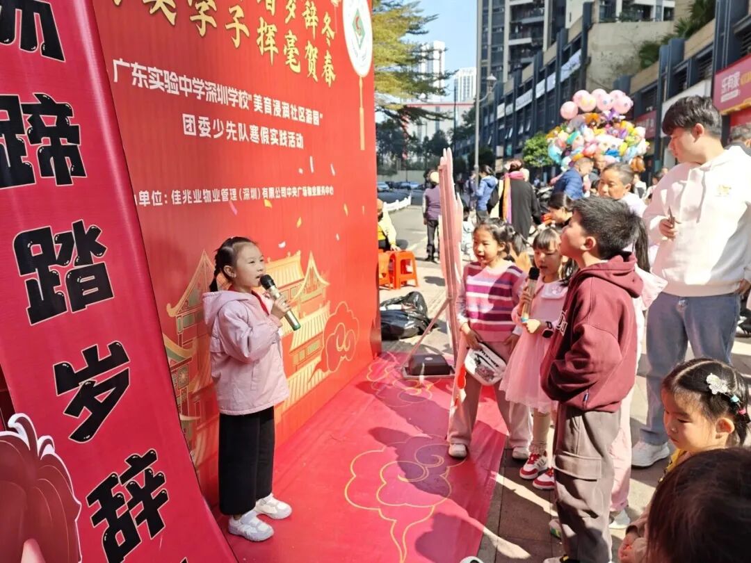 近日,广东省实验中学深圳学校的队员们走进城市广场社区,开展“骏马扬蹄踏岁辞冬,省实学子挥毫贺春”主题迎新活动。队员们以笔墨寄情、以才艺迎新,在写春联、做手工等游园打卡环节中亲身感悟传统魅力,将真挚的新春祝福传递给社区邻里。