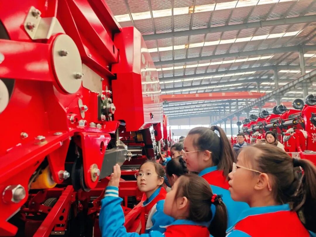 在企业车间,工程师叔叔向大家展示了180D型马铃薯收获机。这款“明星产品”能根据不同地形和农艺需求进行精准调配,还能为不同国家定制改进。在农机展厅,从原始农具到获奖的4UZ-95薯类收获机,队员们直观感受到了农业机械从“会干活”到“干得好、干得巧”的巨大飞跃,体会到科技正在为乡村振兴插上“硬核翅膀”。