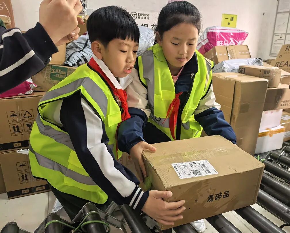 送暖之余,队员们开启职业体验,跟着环卫工人清扫、随快递员分拣包裹,沉浸式感受不同职业的辛劳。此次活动让队员们懂得尊重劳动者、珍惜劳动成果,也让红领巾在实践中绽放责任与担当的光芒。