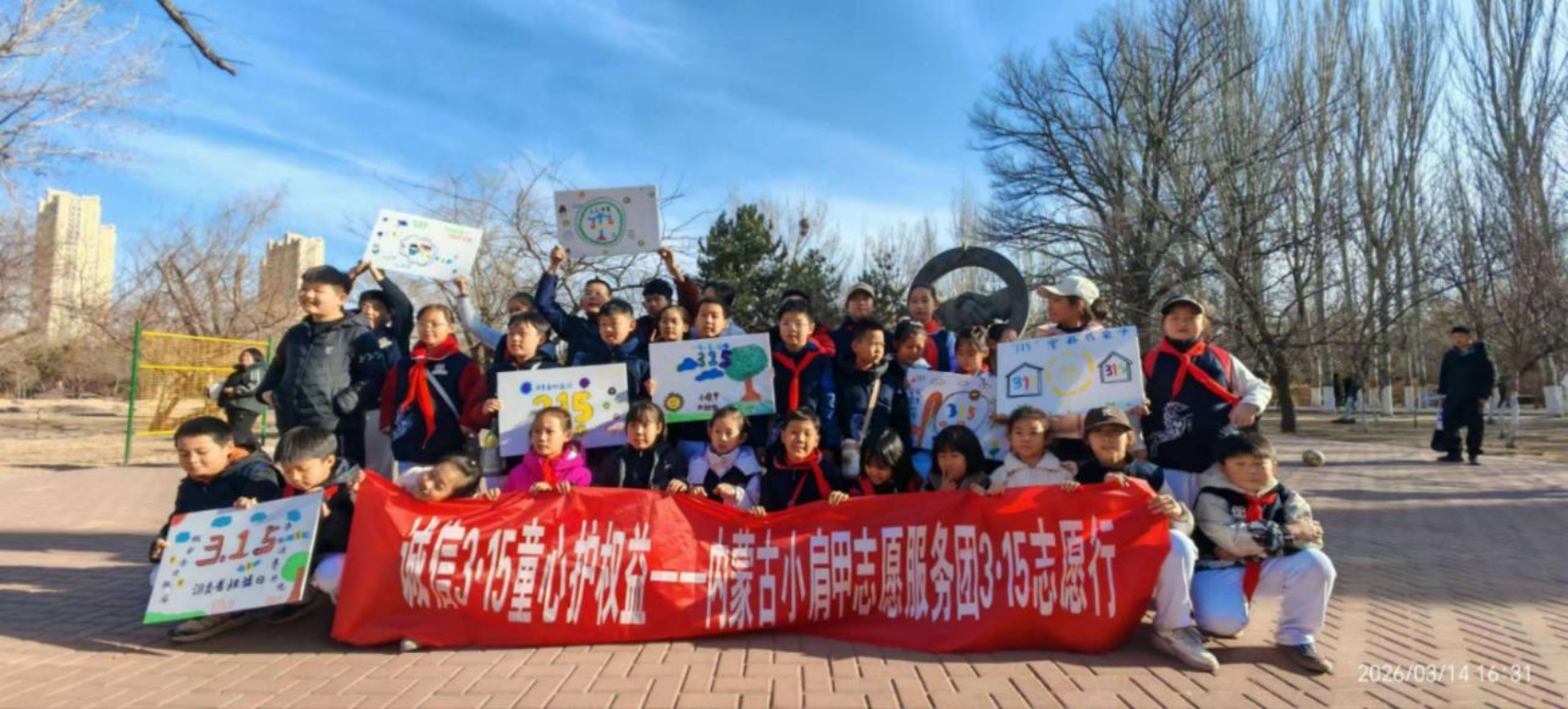 在“3·15”国际消费者权益日来临之际,内蒙古小肩甲志愿服务团于3月14日至15日在八一公园开展了为期两天、共计四场的“诚信315 童心护权益”——“防坑”主题宣传活动。这不仅是一堂生动的社会实践课,更是青少年志愿者参与社会治理、传递诚信力量的有益探索。