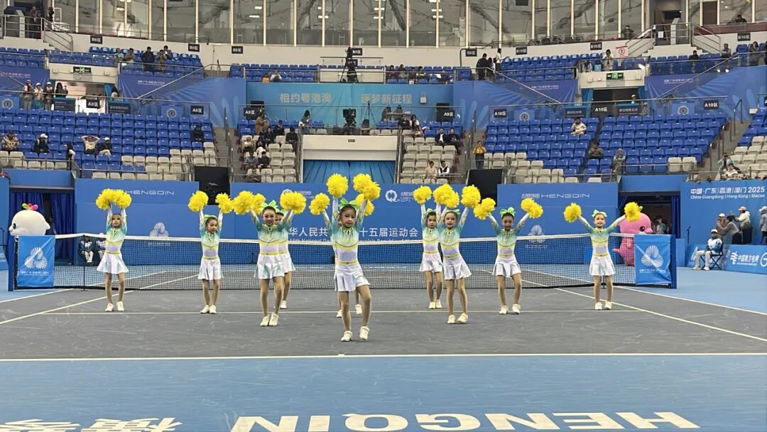 (横琴粤澳深度合作区首都师范大学子期实验小学海燕啦啦操队参加全运会横琴网球比赛展演)
