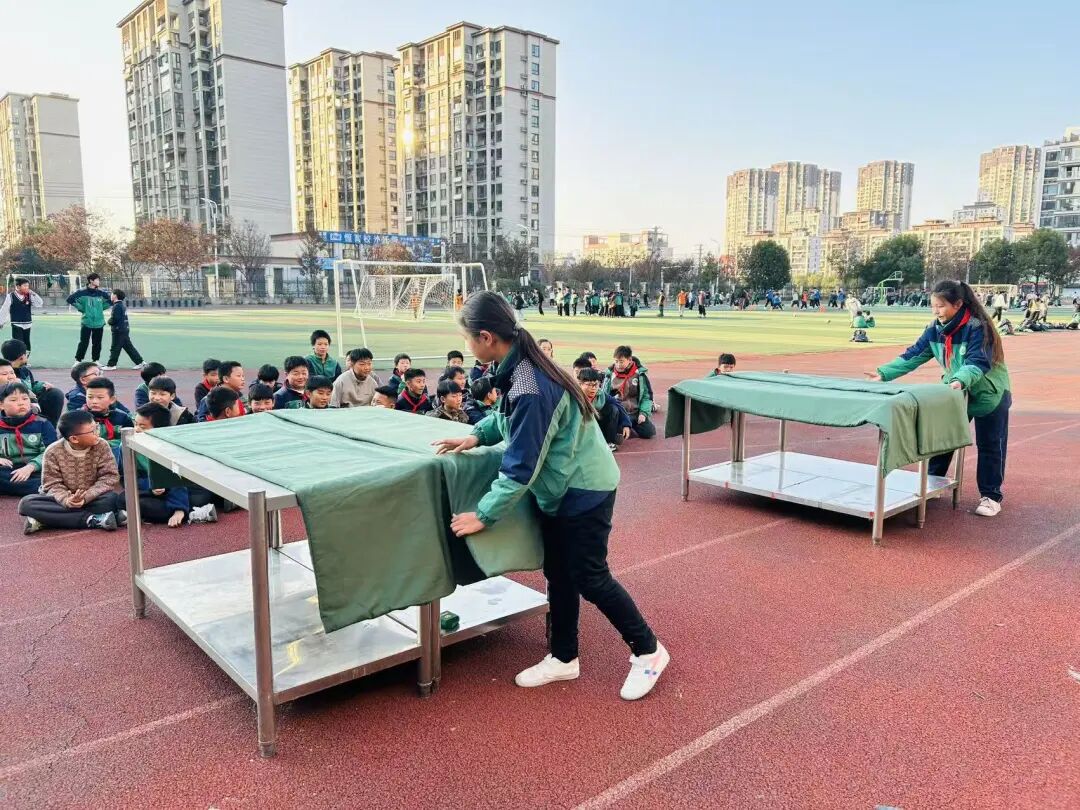 每周二下午,位于安徽省阜阳市颍泉区的泉北小学教育集团都会开展少年军校固定训练和活动。每次活动前,孩子们特别积极,早早换上服装,整装待发,从不迟到。