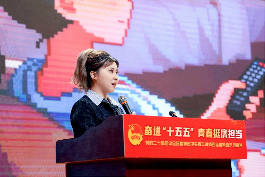 在江西,200余名来自各地的省市级青年讲师团成员、“青马”学员、企业青年和基层团干部代表等,共同走进江西铜业集团有限公司参加报告会。“大家好,我是一个‘全见不带万’(地地道道)的南昌人!”青年宣讲员李灿选择用方言进行自我介绍,迅速拉近了与观众的距离,然后像拉家常一样讲起了江铜稀贵稀散金属研发青年突击队、井冈山脚下的乡村振兴带头人、南昌航空城技术研发者、景德镇陶瓷文化创新传播者等一系列赣鄱儿女的青春故事,潜移默化地把全会精神传递给青年。青年宣讲员朱昊琳把现场观众倍感亲切的重器——“江铜1号”盾构机的研发故事作为例子,详细讲述了青年科研人员如何将图纸变为穿越地层的国之利器,引导大家深刻体会“十四五”时期的科技成就。现场青年纷纷表示,这样的宣讲既讲清了“国家规划怎么看”,也回应了“青年担当怎么办”,与地方特色结合,让全会精神在具体场景中变得更加可感可知。在景德镇陶瓷大学,青年宣讲员贺鹏飞以共享单车、新能源汽车、环保消费等生活场景为切入,生动阐释了绿色转型已融入日常的发展大势。在青年宣讲员薛峰的讲述中,国家安全这个看似宏大的主题,被转化为青年身边一项项具体而微的责任,“它不只在边关海防,也在我们手中的每一段代码、每一组数据、每一项实验操作当中。”报告会后,青年宣讲员还与在场青年学生进行了热烈深入的交流,特别是国产文创“出海”等话题,引发了同学们关于全会精神的进一步思考和共鸣。