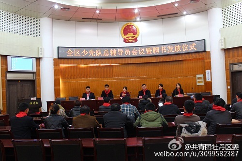 2014年12月23号下午,牡丹区少先队总辅导员会议暨聘书发放仪式在区委大厦八楼会议室举行。团区委、区教育局、区少工委相关负责人和各学校少先队总辅导员参加会议。